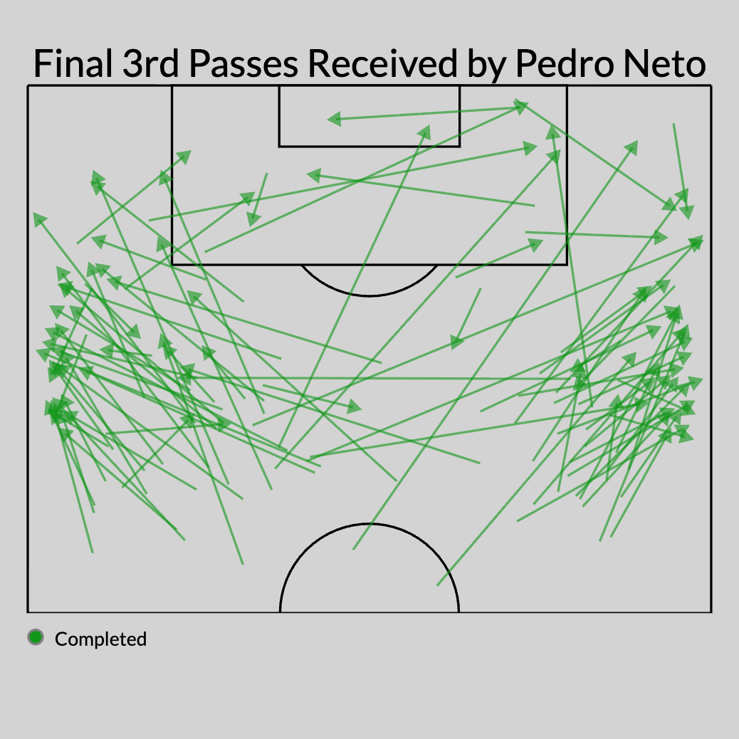 Key stat: Neto has received 103 passes in the final third -- 36 more than anyone else.