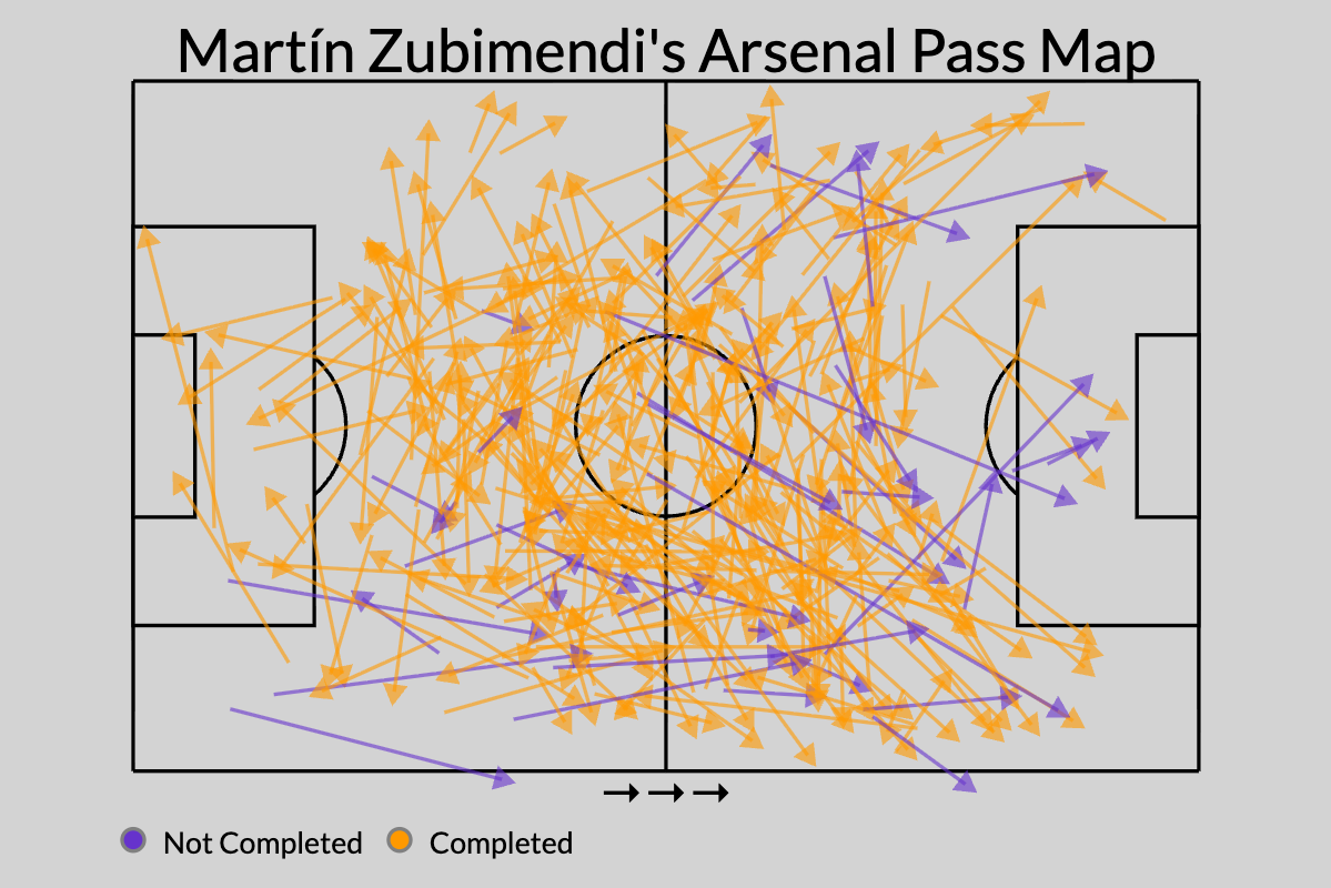 There's no doubt the Spain midfielder already has a firm grip on this team's possession play, and what's notable is that he's distributing the ball much more evenly from left to right than Arsenal are perhaps used to.
